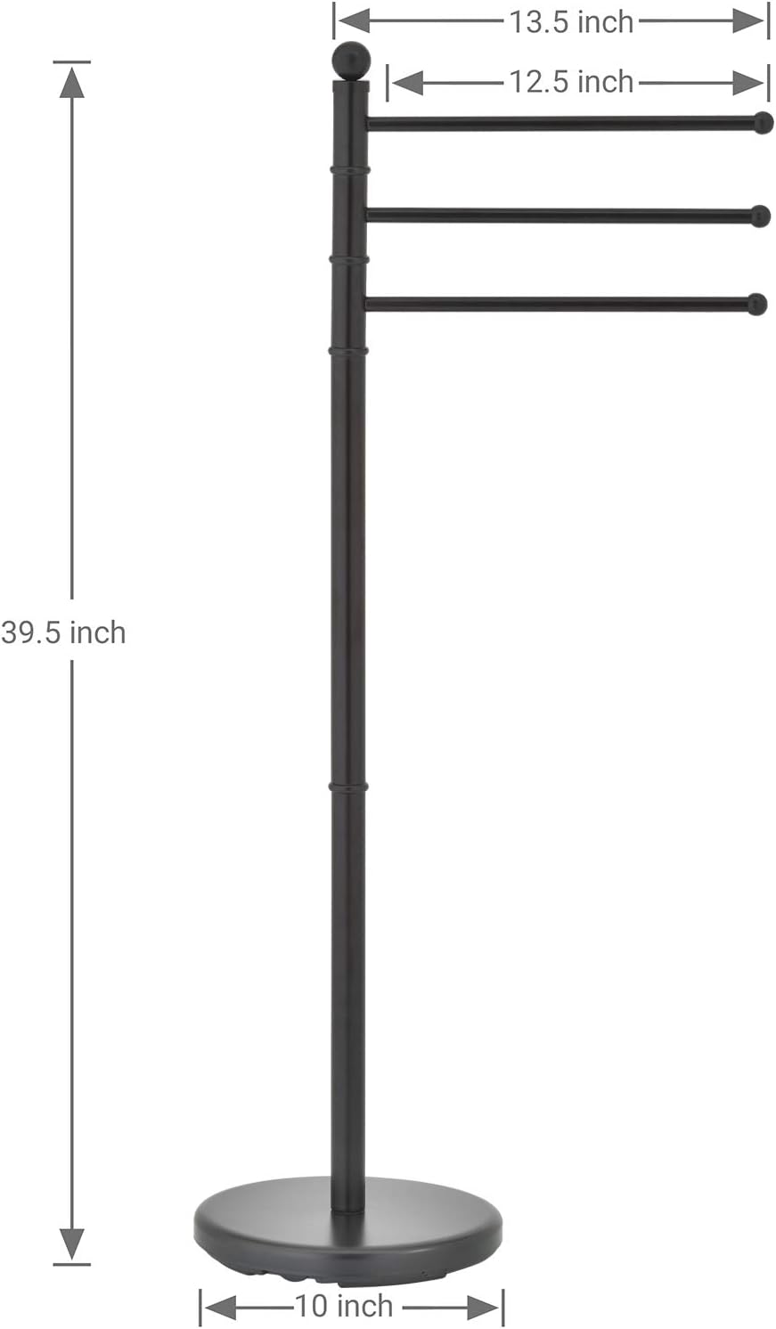 Crafted from high-quality metal with a matte black finish, this freestanding towel rack is not only durable but also adds a touch of elegance to any bathroom decor. The swivel bar arms allow you to easily hang and access your towels, while also enabling them to dry quickly and efficiently.